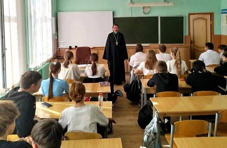 В рамках сотрудничества Свято-Троицкого прихода г. Ростова-на-Дону и МБОУ «Школа № 67» состоялась беседа клирика прихода со школьниками о Кресте Господнем.