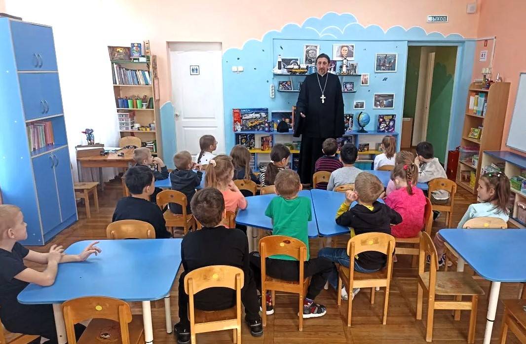 Клирик Свято-Троицкого прихода провел беседу о Кресте Господнем и нравственном поведении с воспитан никами детского сада № 284