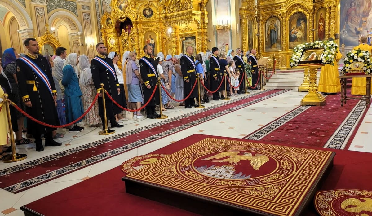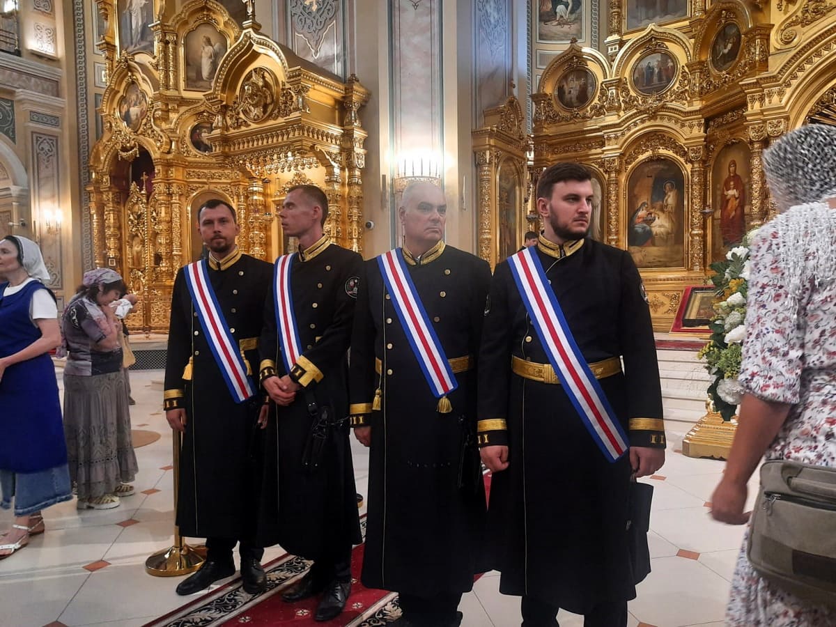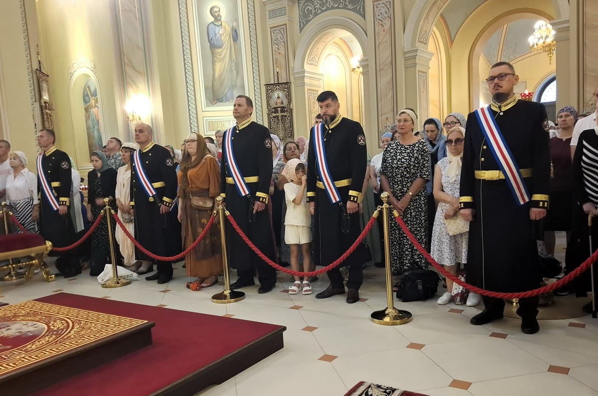Во встрече ковчега с мощами святителя Тихона и Божественной литургии по благословению митрополита Ростовского и Новочеркасского Меркурия, возглавившего Божественную литургию, приняли участие члены Общества Хоругвеносцев Ростовской-на-Дону епархии, организованного в 2023 году.