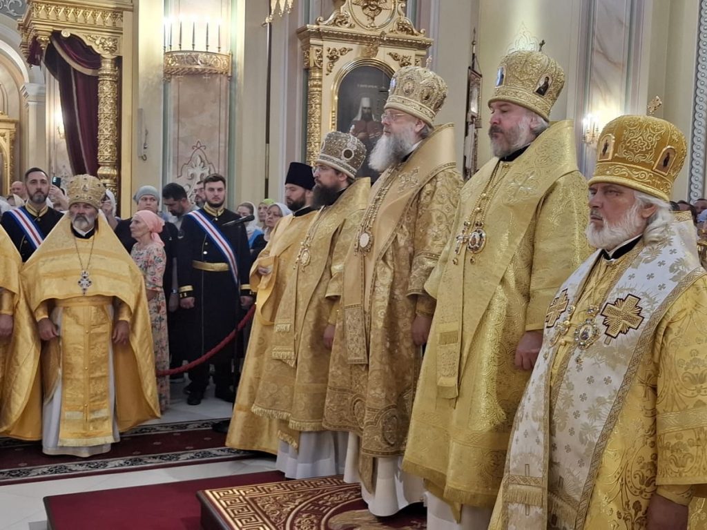 Его Высокопреосвященству сослужили епископ Шахтинский и Миллеровский Симон, викарий Ростовской епархии епископ Таганрогский Артемий, епископ Пармен (Щипелев), секретарь митрополита Ростовского и Новочеркасского по городу Ростову-на-Дону протоиерей Иоанн Осяк, председатель приходского совета собора протоиерей Александр Брянцев, члены Епархиального совета, наместник Донского Старочеркасского Ефремовского мужского монастыря игумен Сергий (Коломиц), личный секретарь Главы Донской митрополии иерей Сергий Грибов, сопровождающий ковчег с мощами святителя Тихона иерей Максим Марук, клирики Донской митрополии.