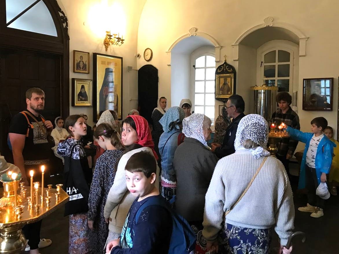 В обители паломников познакомили с историей обители, её святынями, рассказали о современном устроении быта монашествующих. Знакомство с монастырём началось с посещения храма в честь иконы Божией Матери «Донская». Инок Амвросий рассказал много интересного о быте казаков и истории станицы Старочеркасской, бывшей столице Донского казачества.