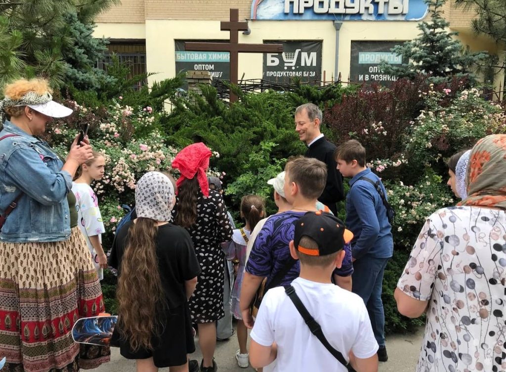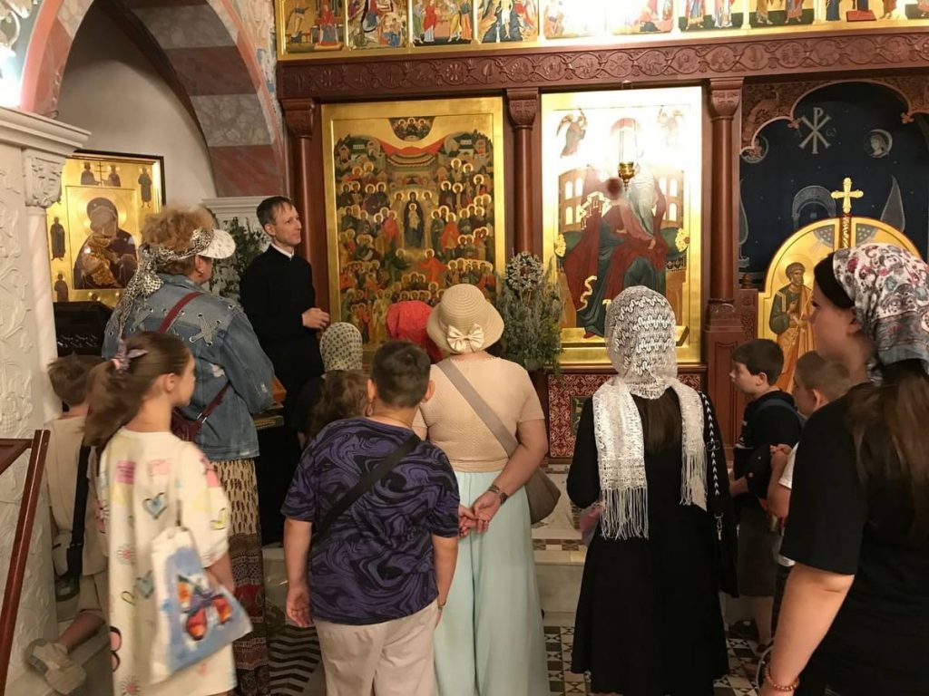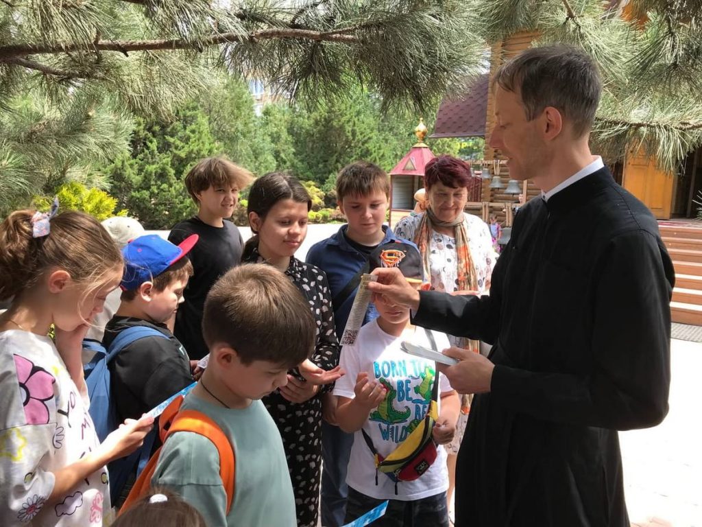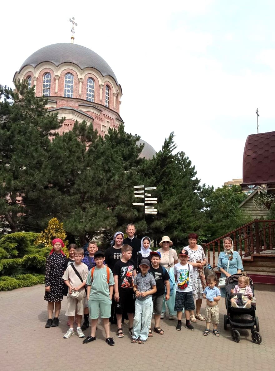 19 июня 2025 года по благословению благочинного приходов Юго-Западного и Западного округа, настоятеля Свято-Троицкого прихода г. Ростова-на-Дону протоиерея Иоанна Осяк воспитанники летней площадки «Семицветик» Юго-Западного благочиния побывали на экскурсии в главном православном воинском храме Южного военного округа, которую для гостей провел алтарник Сергей Гуда.
