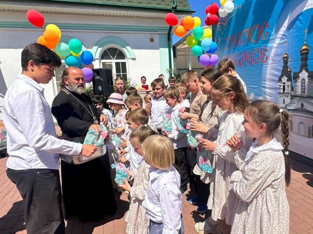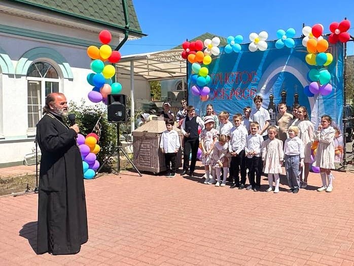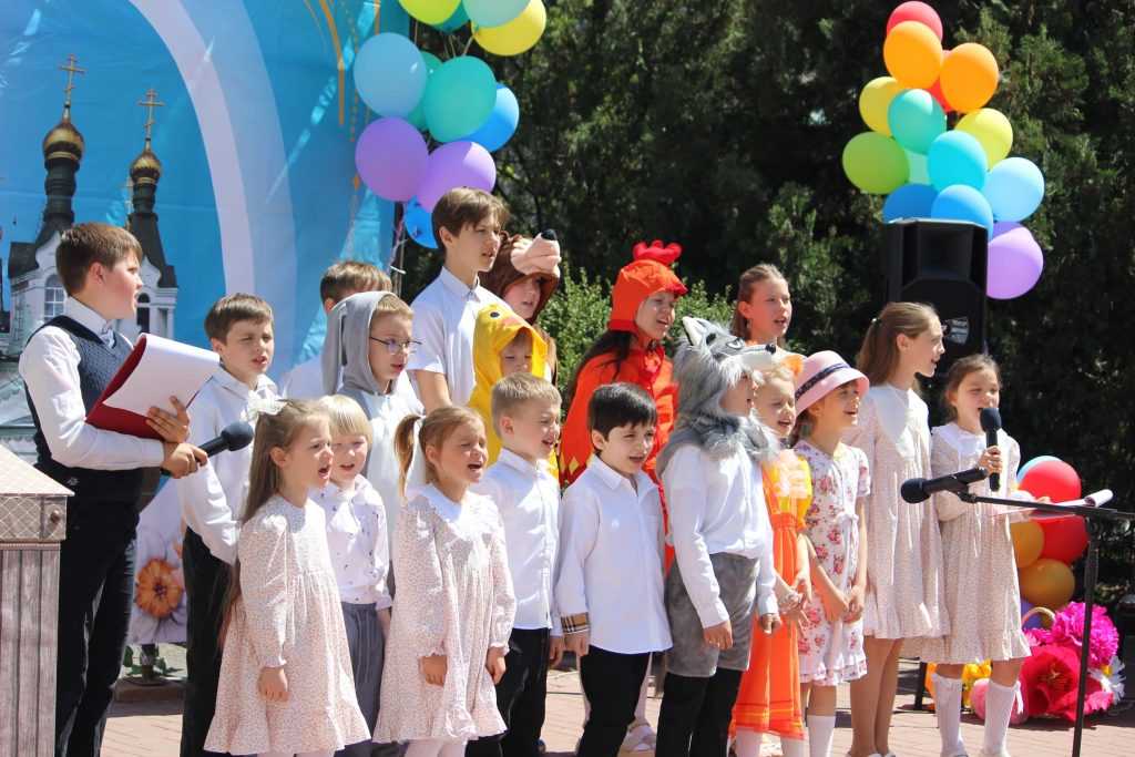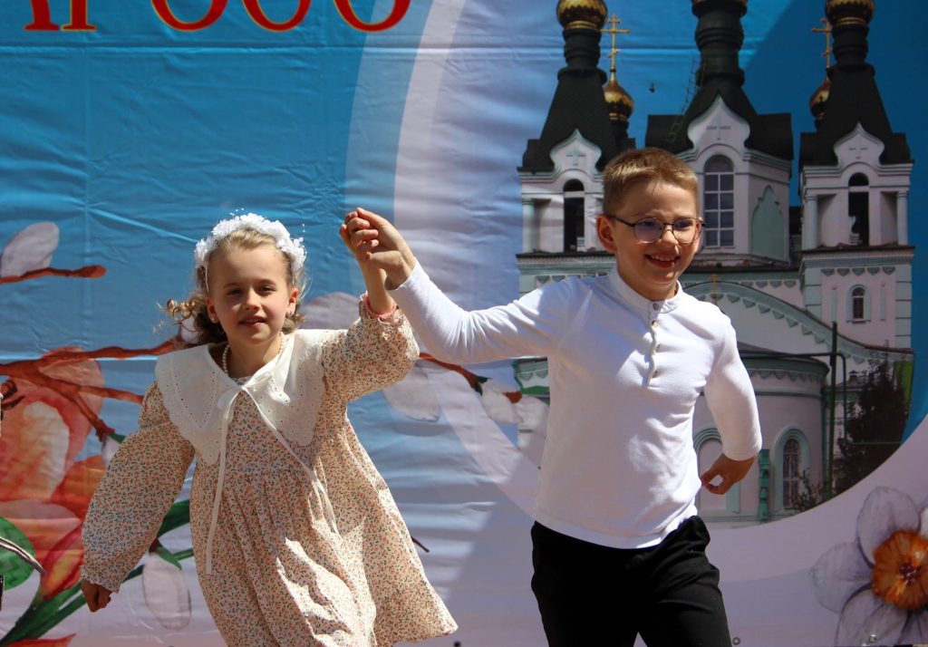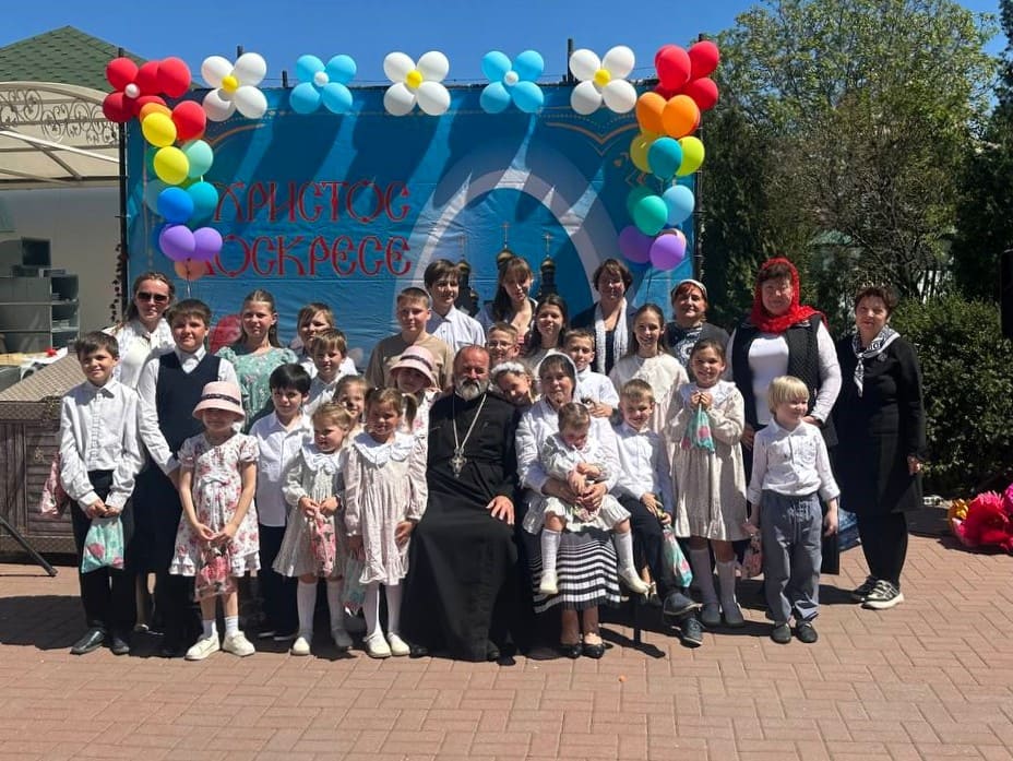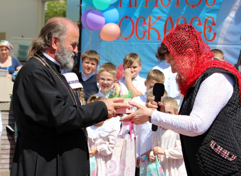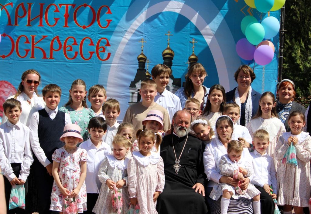 По благословению настоятеля прихода протоиерея Иоанна Осяк под руководством педагогов был подготовлен праздничный пасхальный концерт, который прошел под открытым небом на подворье Троицкого прихода.