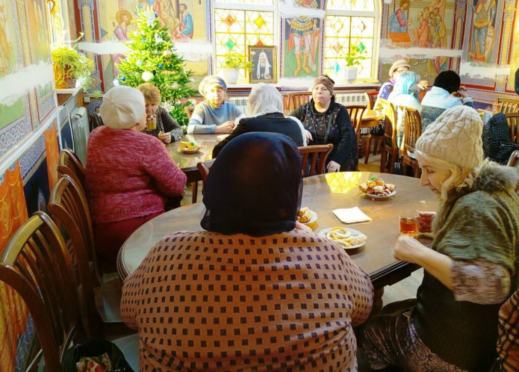 После этого сёстры милосердия пригласили людей с ограниченными возможностями в трапезную и вручили им рождественские подарки.