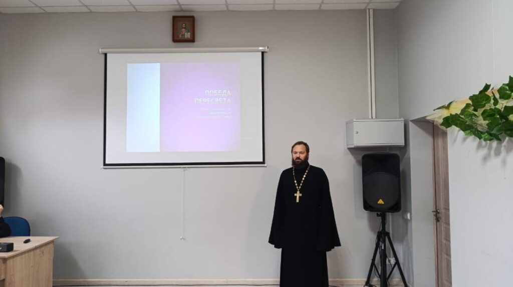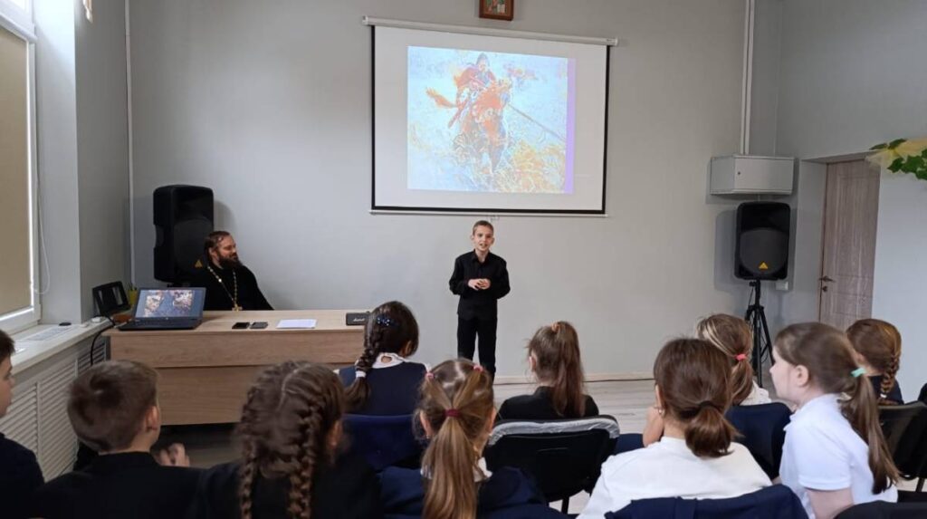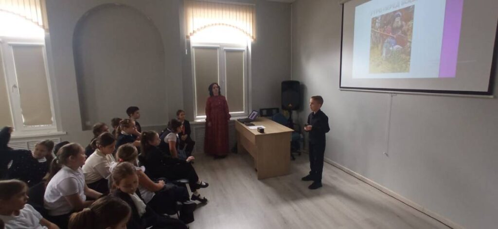 7 ноября 2025 года в духовно-просветительском центре храма преподобного Серафима Саровского состоялось мероприятие в рамках XXX Димитриевских образовательных чтений. Диалог «Победа Пересвета» был подготовлен для младших классов школы № 67/2 и Юридической гимназии имени М.М. Сперанского № 9, сотрудниками библиотеки имени В. А. Закруткина. В начале встречи к слушателям с вступительным словом обратился настоятель храма иерей Александр Орешин. В своем слове священник затронул тему жертвенности русских воинов во благо Родины и участливого отношения к окружающему миру как к своему дому, а также напомнил о необходимости совершения выбора поступков в пользу ближних, для укрепления семьи и на пользу Родине. Далее с сообщением выступили заведующая библиотекой имени В.А. Закруткина Волощукова Татьяна и постоянный читатель библиотеки, Волощуков Николай. Слушатели узнали предысторию Куликовской битвы, ее ход, поединок Пересвета и Челубея. Особенное внимание ведущие уделили личности Пересвета и его подвигу, используя в качестве иллюстрации картину Павла Рыженко — «Победа Пересвета». В конце повествования было зачитано стихотворение Константина Симонова «Безыменное поле», как иллюстрация русской воинской преемственности в жертвенности и любви к Родине — неизменной особенности русского солдата — победителя и освободителя.
