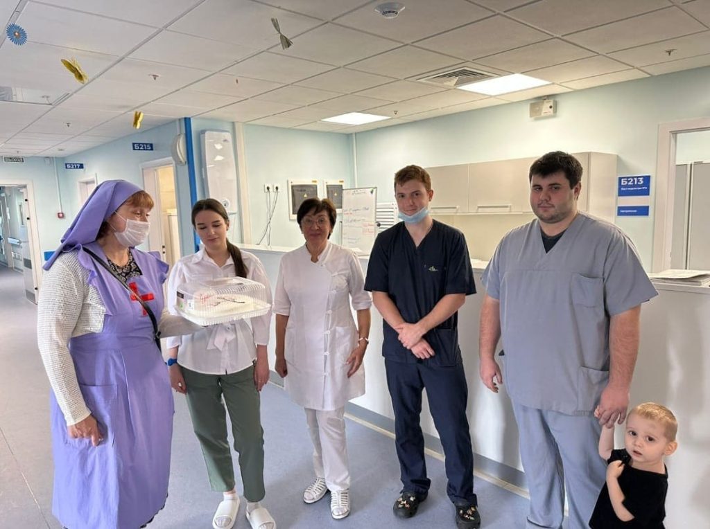 Сестры милосердия Георгиевского сестричества посетили онкогематологическое отделение Детской областной Клинической больницы, где поздравили сотрудников и вручили им сладкие подарки.