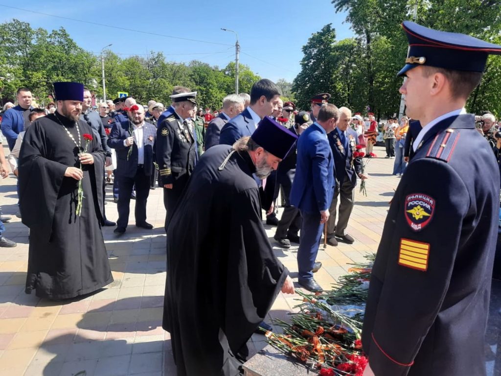 В мероприятии принял участие благочинный Западного и Юго-Западного округов г. Ростова-на-Дону, секретарь митрополита Ростовского и Новочеркасского по г. Ростову-на-Дону протоиерей Иоанн Осяк и духовенство Западного благочиния. Также в церемонии возложения цветов приняли участие глава Администрации Советского района Никита Переузов, председатель Совета ветеранов Советского района Сергей Шацкий, ветераны Великой Отечественной войны, военнослужащие, представители совета молодежи Советского района. Собравшиеся почтили память погибших солдат минутой молчания. Затем состоялась церемония возложения цветов и венков к памятнику «Солдатам Победы»