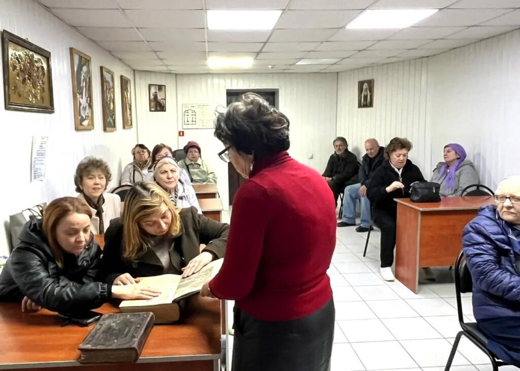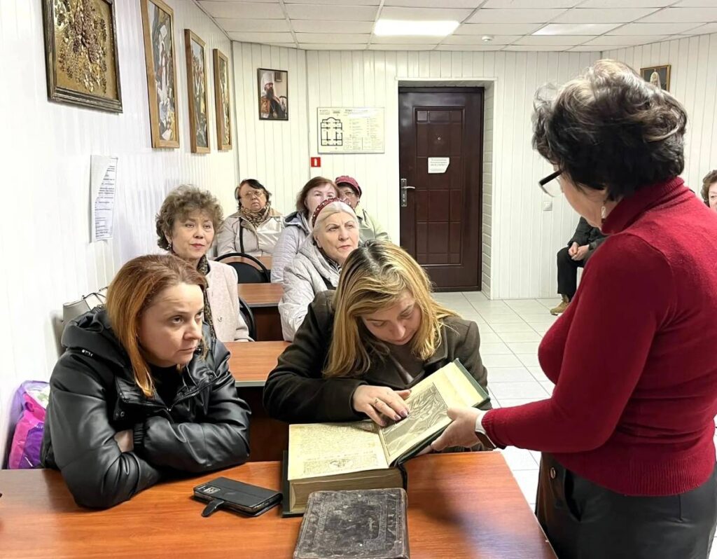 13 марта 2026 года в рамках празднования Дня православной книги для членов местных Ростовско-Ленинской и Ростовско-Октябрьской организаций ВОС в библиотеке Свято-Троицкого прихода состоялась беседа об истории книгопечатания и знакомство с выставкой «Церковные книги».