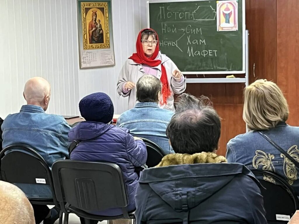 В ходе занятия участники «Библейского кружка» прочитали восьмую и девятую главы книги Бытия и услышали толкование на них. Ранее 12 и 26 марта они уже познакомились с текстами и толкованием с четвертой по седьмую главы первой книги Пятикнижия.