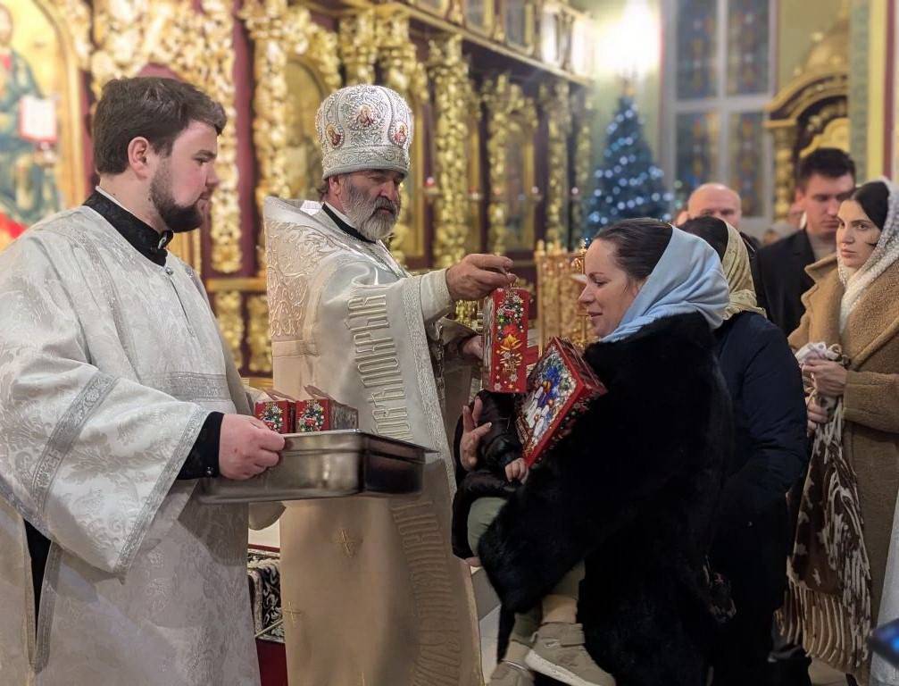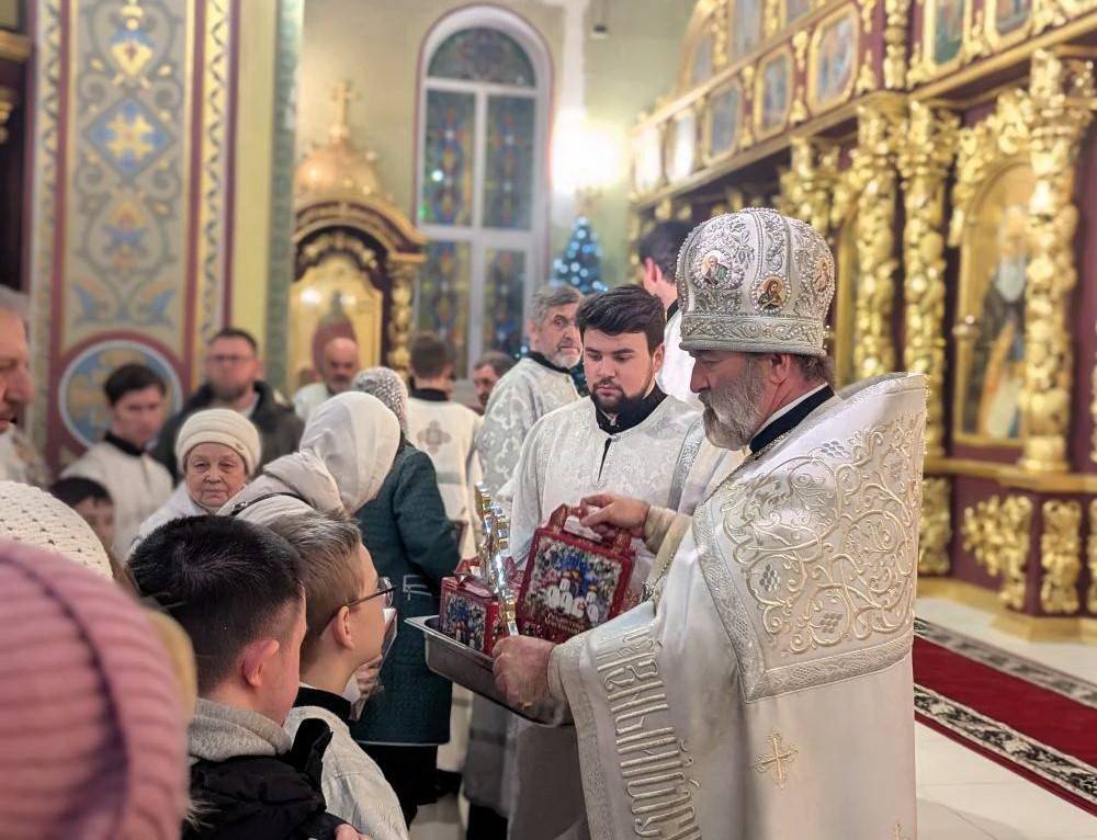 7 января Святая Церковь празднует один из величайших двунадесятых праздников — Рождество Христово. По установившейся традиции Попечительский совет прихода и благотворители храма Святой Троицы г. Ростова-на-Дону приготовили к празднику сладкие Рождественские подарки. службу. По окончании богослужения настоятель прихода — благочинный приходов Юго-Западного и Западного округов, секретарь митрополита Ростовского и Новочеркасского по городу Ростову-на-Дону, протоиерей Иоанн Осяк вручил их всем, кто в эту ночь молился на праздничном богослужении. Никто, из пришедших в храм прославить родившегося Богомладенца Христа, не остался без подарка.