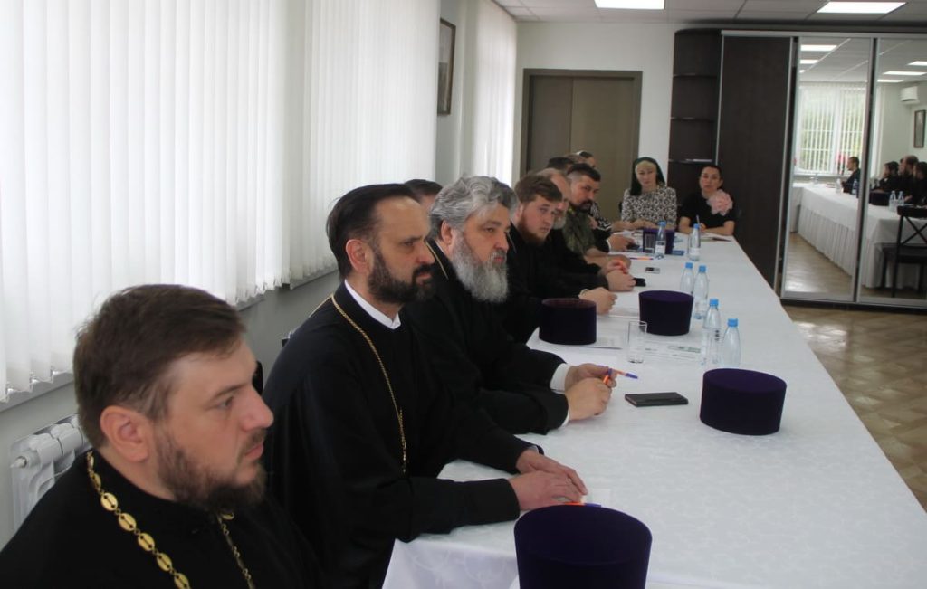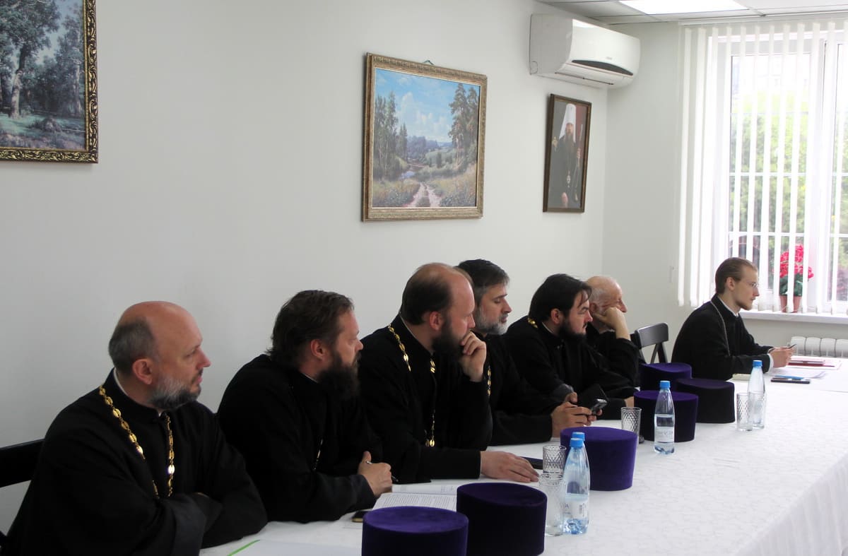 Отдельное внимание было уделено вопросам окормления раненных бойцов в госпитальных отделениях, находящихся на территории Железнодорожного и Советского районов, а также организации сестричеств на приходах Юго-Западного благочиния.