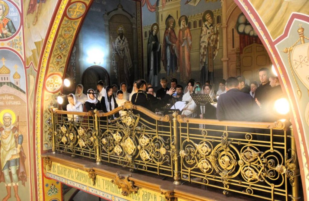 Песнопения богослужений исполнил смешанный хор духовной школы под управлением иеромонаха Аверкия (Шапошникова).