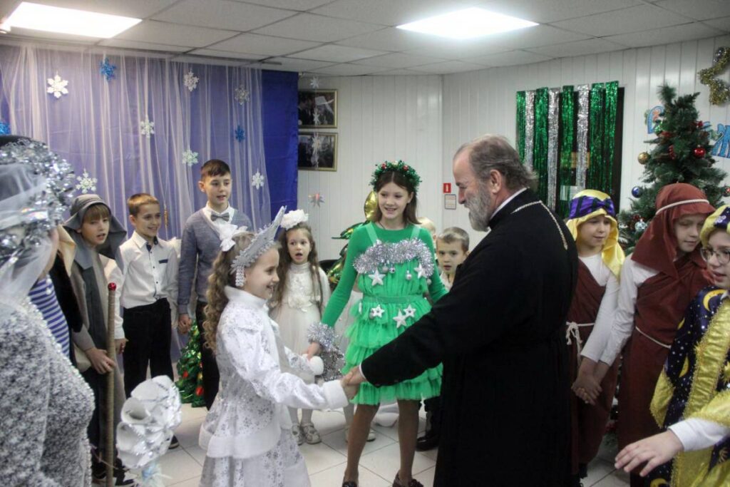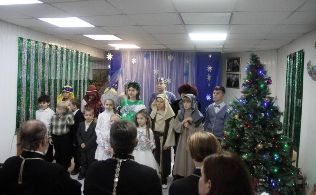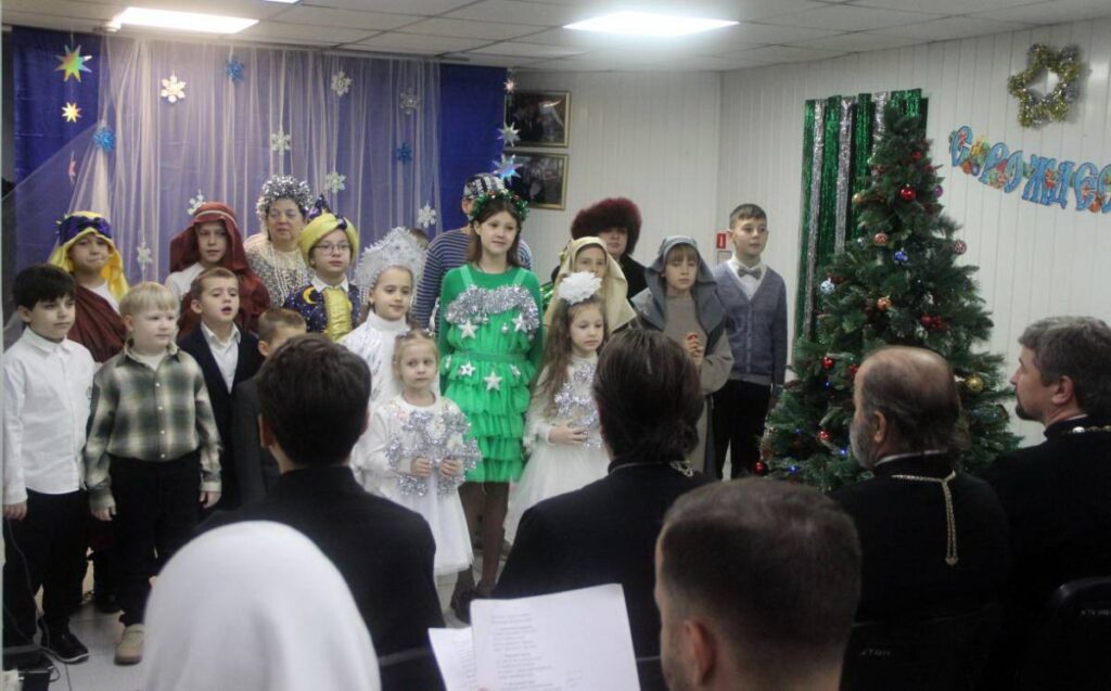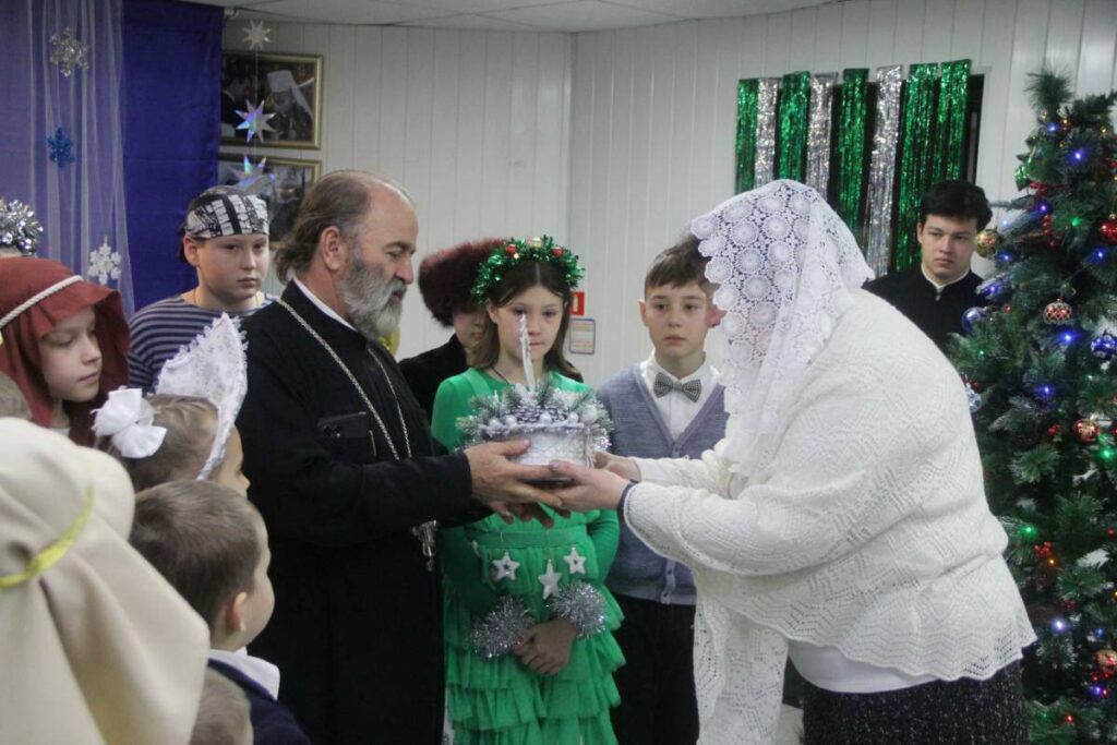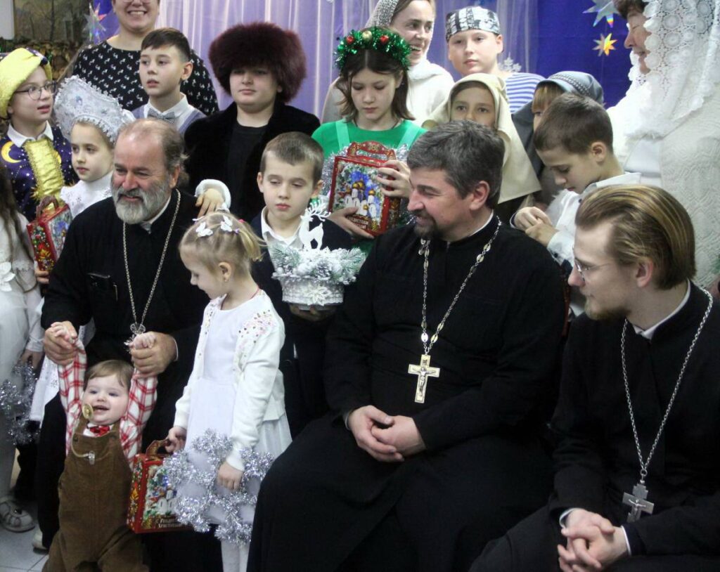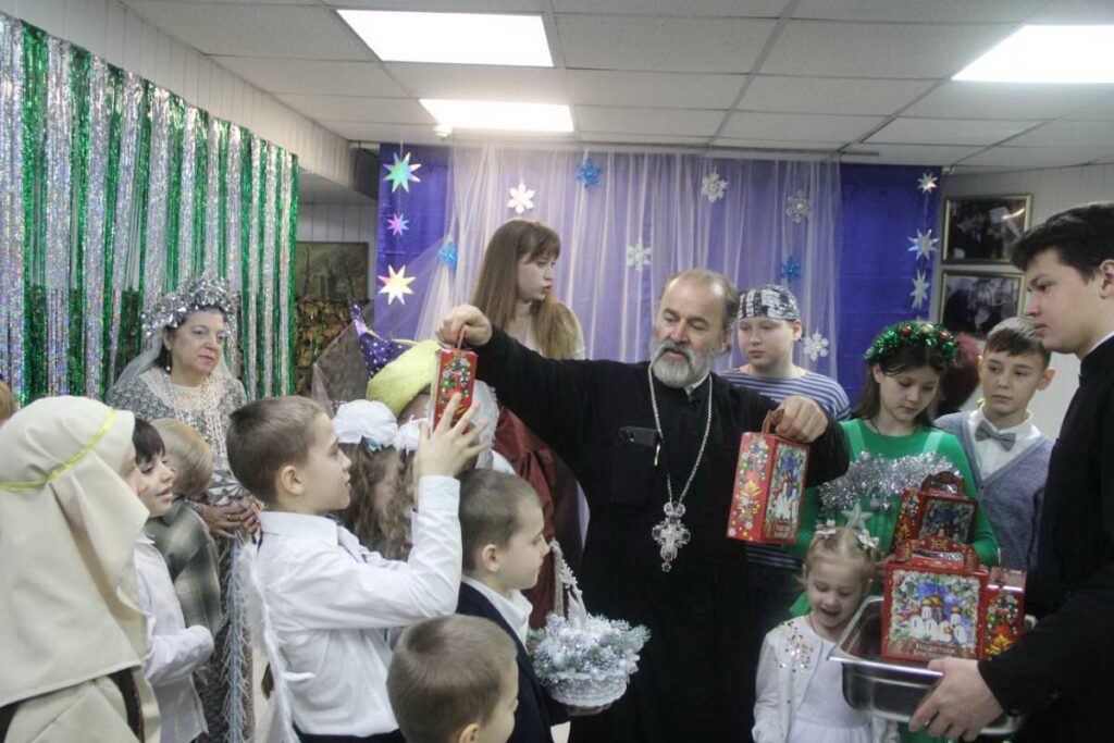 Праздник начался исполнением Рождественского тропаря. Воспитанники воскресной учебно-воспитательной группы прихода подготовили театрализованное представление об истории Рождества Христова, исполнили рождественские песнопения, стихи и танцы. Из уст детей прозвучали искренние поздравления и пожелания всем добра, радости и мира.