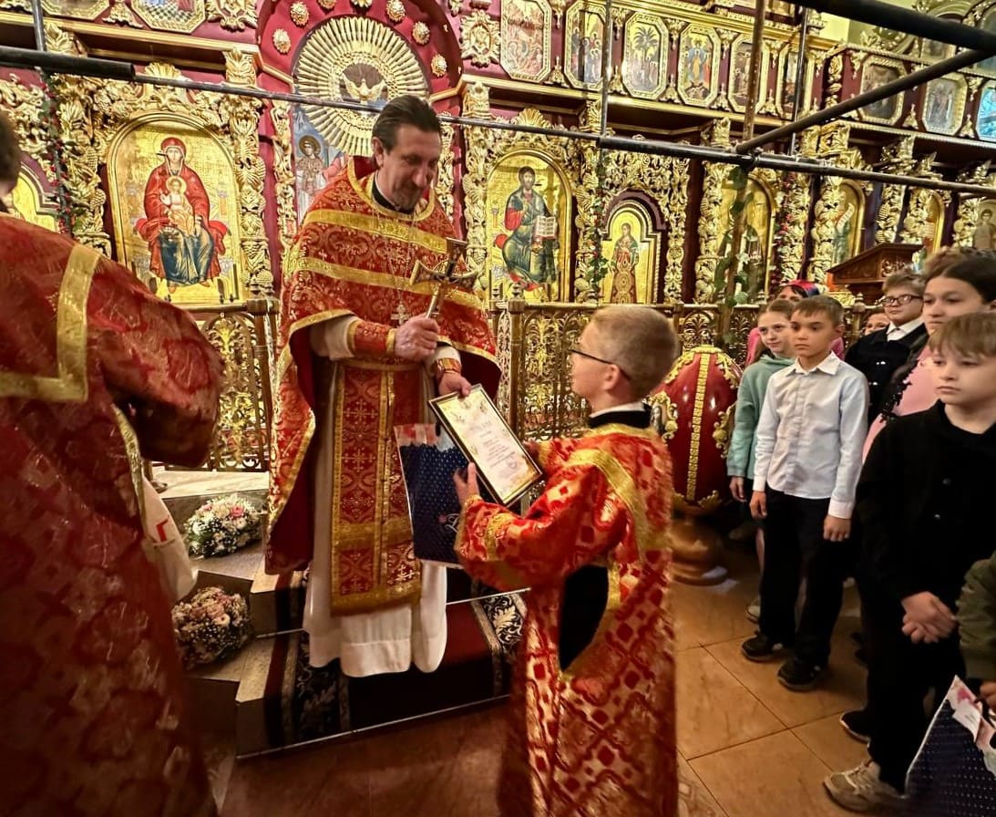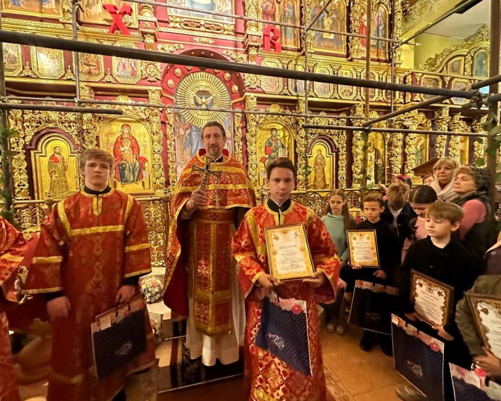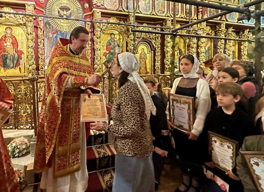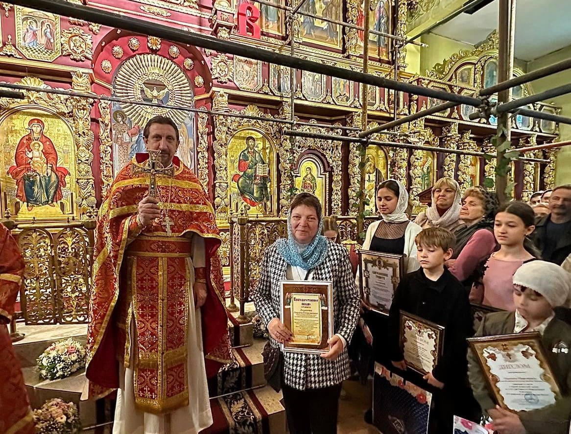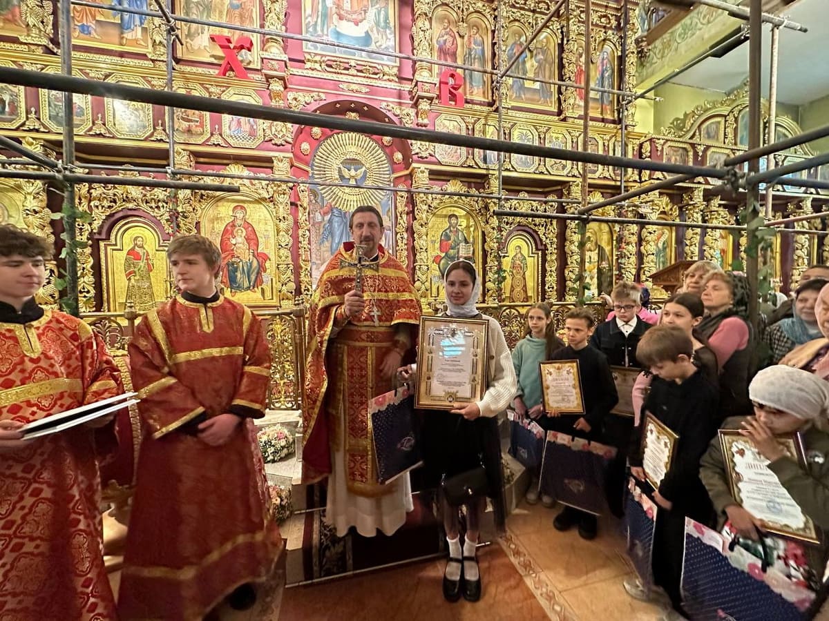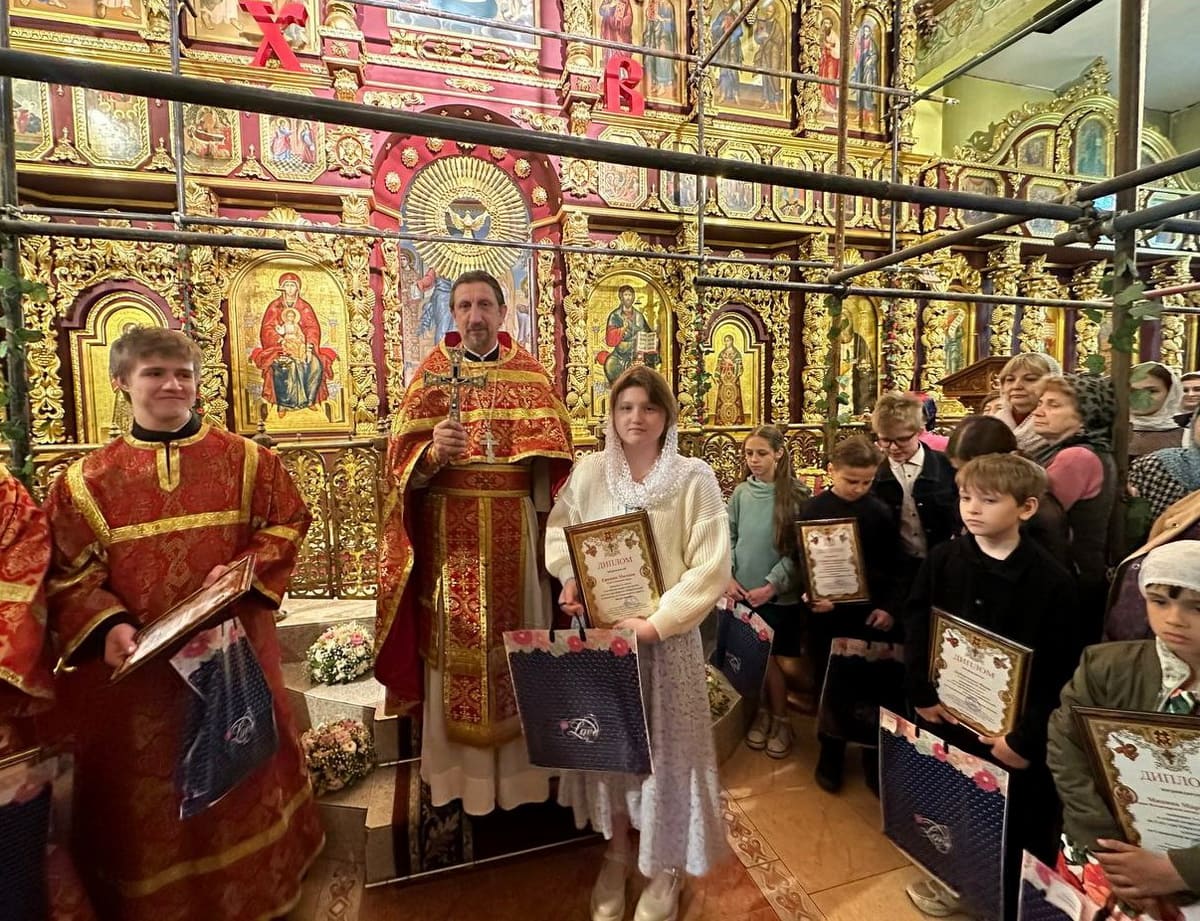 18 мая 2025 года по окончании Божественной литургии в Троицком храме Юго-Западного благочиния состоялось награждение победителей и призеров 2-го тура Кирилло-Мефодиевской олимпиады по Священной истории и Закону Божию. Ими стали 14 ребят из шести приходов благочиния.