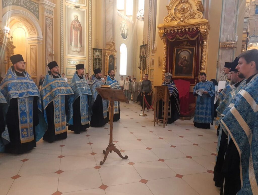 21 сентября 2025 г. по благословению митрополита Ростовского и Новочеркасского Меркурия, благочинный приходов Юго-Западного и Западного округов, секретарь митрополита Ростовского и Новочеркасского по г. Ростову-на-Дону протоиерей Иоанн Осяк совершил молебен с чтением акафиста перед чтимым образом Донской иконы Божией Матери в Ростовском кафедральном соборе Рождества Пресвятой Богородицы.