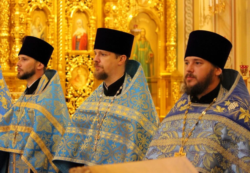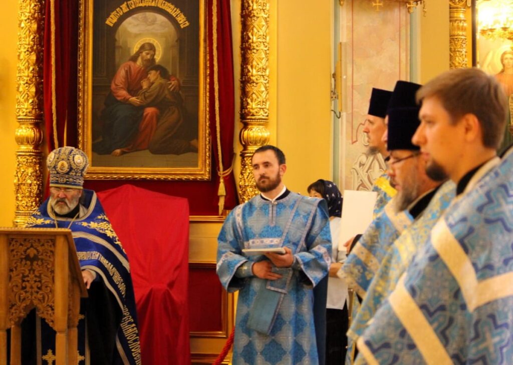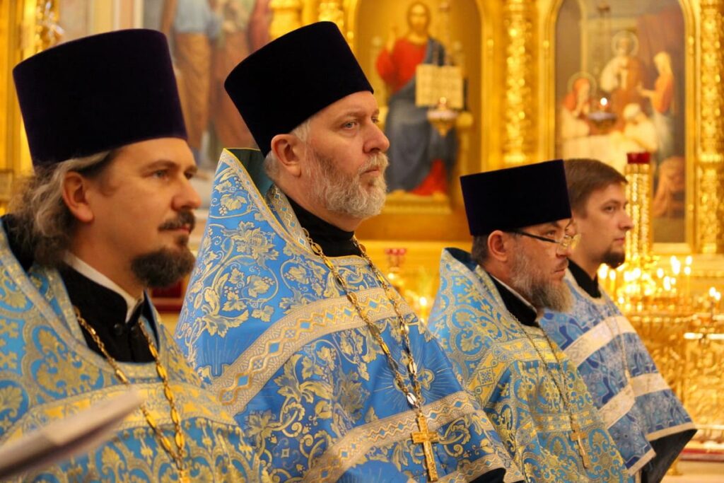 Его Высокопреподобию сослужили настоятели и клирики храмов Западного благочиния. Песнопения богослужения исполнил сводный хор благочиния под управлением регента Ксении Колодяжной.