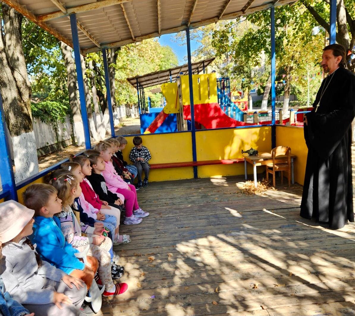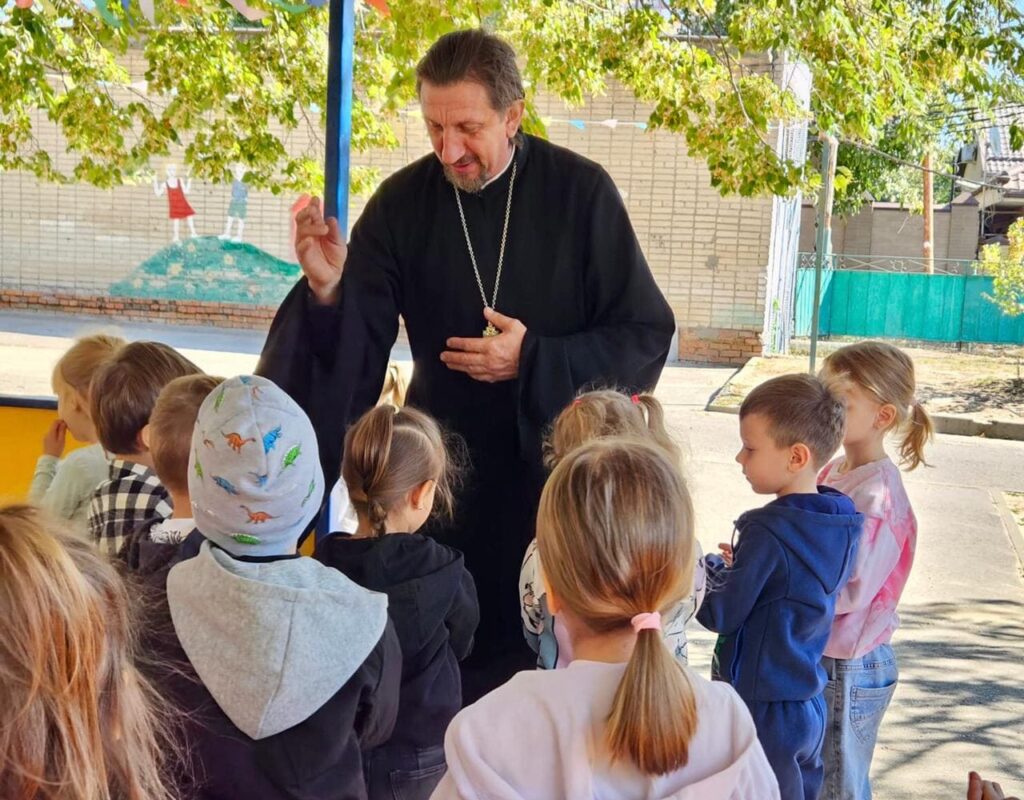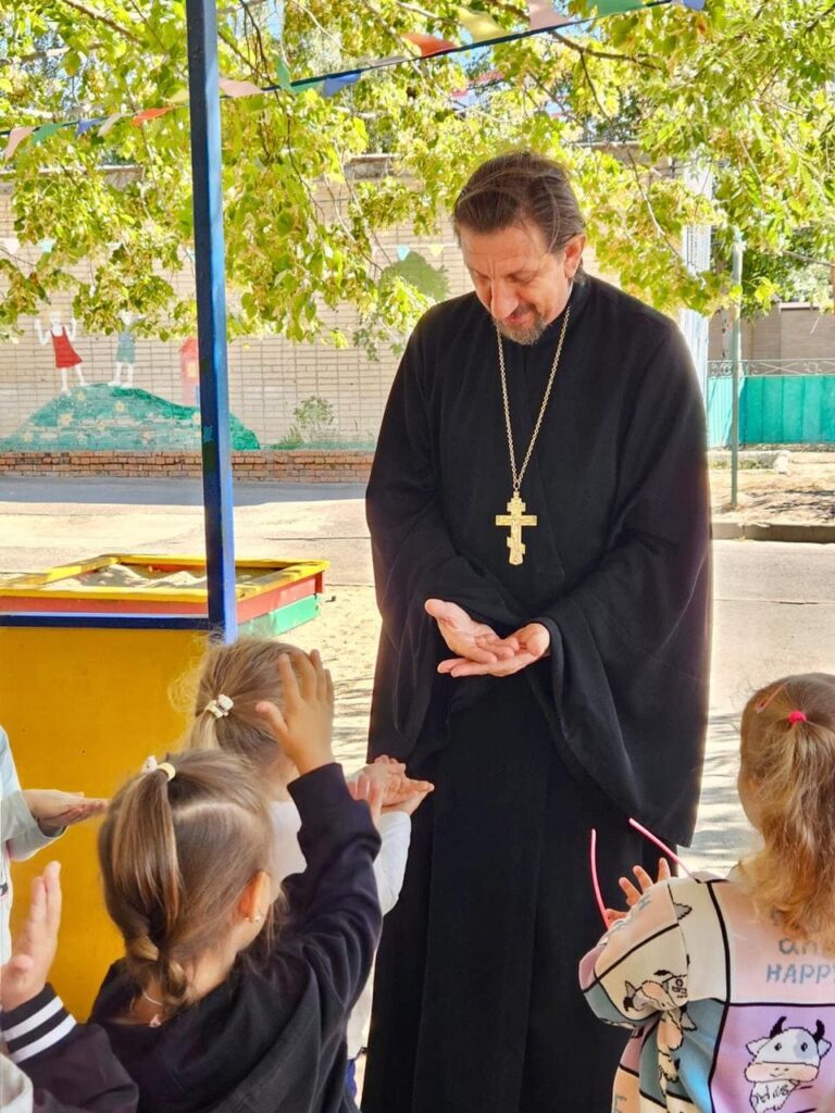 15.09.25. по благословению благочинного Юго-Западного и Западного округа, настоятеля Свято-Троицкого прихода протоиерея Иоанна Осяк клирик прихода иерей Александр Лиманов провел очередное занятие с воспитанниками детского сада № 284 Железнодорожного района г. Ростова-на-Дону.