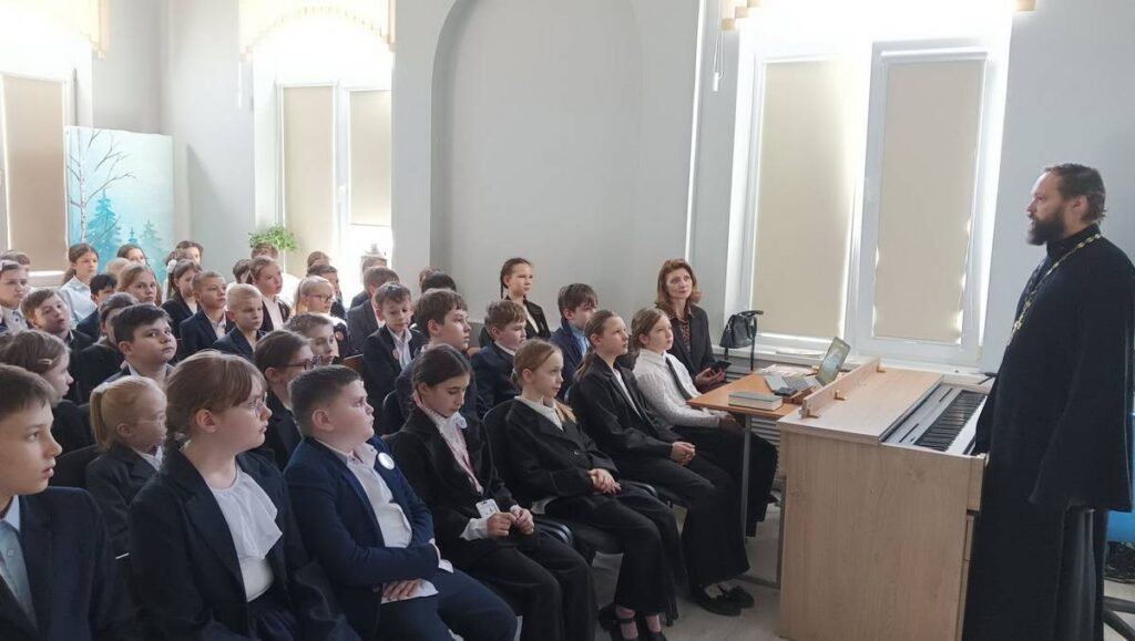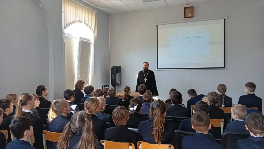 Настоятель храма, иерей Александр Орешин, познакомил школьников с одной из важнейших книг христианской традиции — «Апостолом». Отец Александр рассказал о структуре священного текста, его авторах и содержании, а также объяснил, почему именно эта книга стала первой, напечатанной Иваном Фёдоровым на Руси.