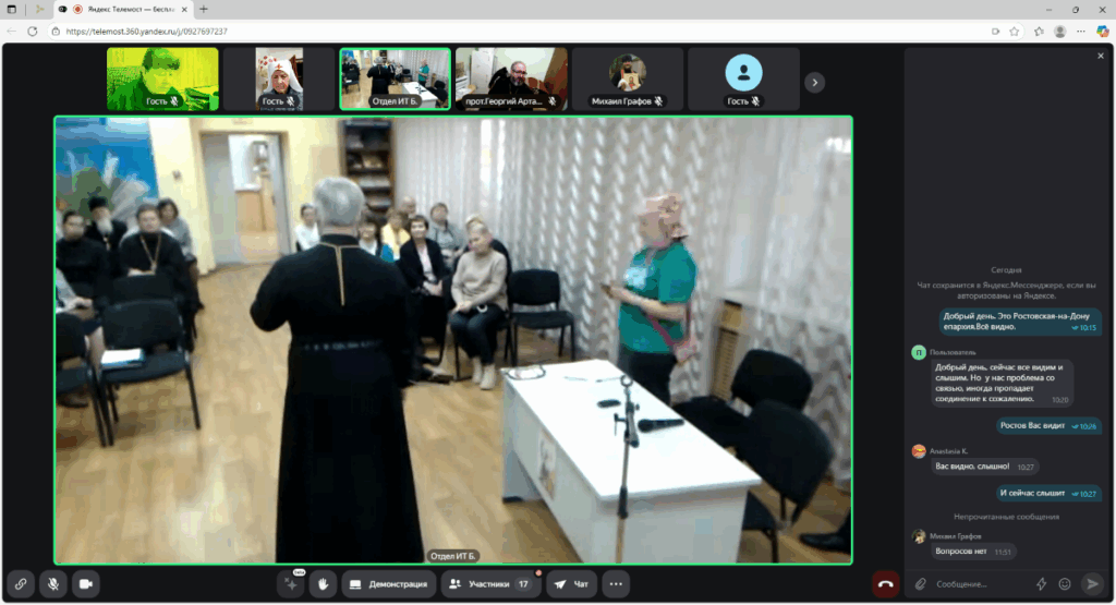 15 октября по благословению благочинного Юго-Западного и Западного округа г. Ростова-на-Дону протоиерея Иоанна Осяк помощник благочинного Юго-Западного округа по РОиК Марина Подгородниченко приняла участие в конференции «Не зря в храме», приуроченной к Международному дню белой трости.