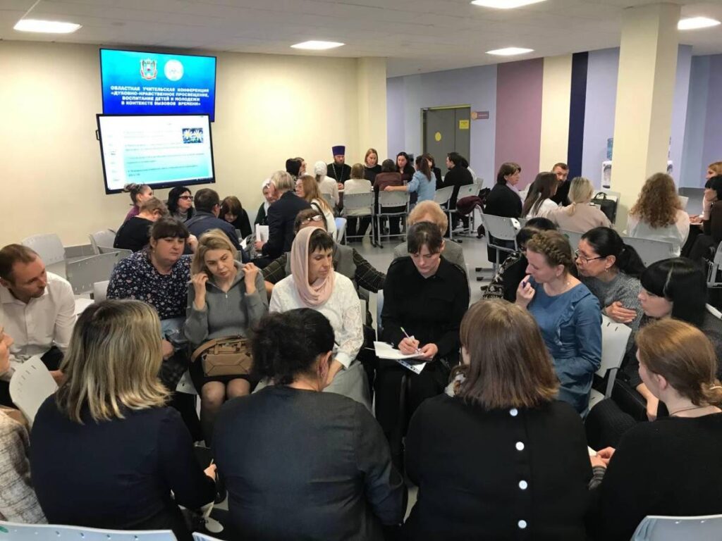Представители приходов Юго-Западного и Западного благочиний участвовали в работе Секции 3: «Актуальные проблемы и опыт перехода воскресных школ и учебно-воспитательных групп Ростовской-на-Дону епархии на преподавание по Единому учебно-методическому комплексу «Бог и человек: движение навстречу», которая проводилась в формате обсуждения проблем работы воскресных школ в 7 фокус-группах с последующим выступлением представителей каждой из них, показом опыта педагогов, рассмотренного в группах.
