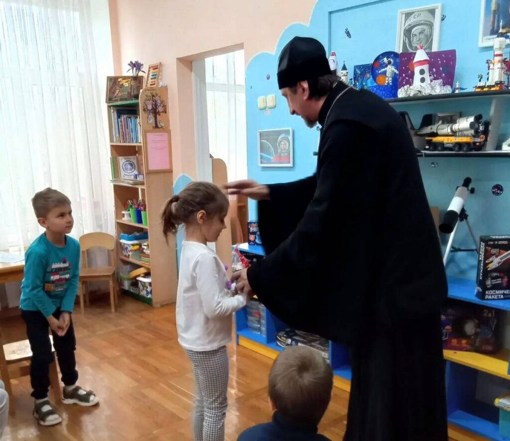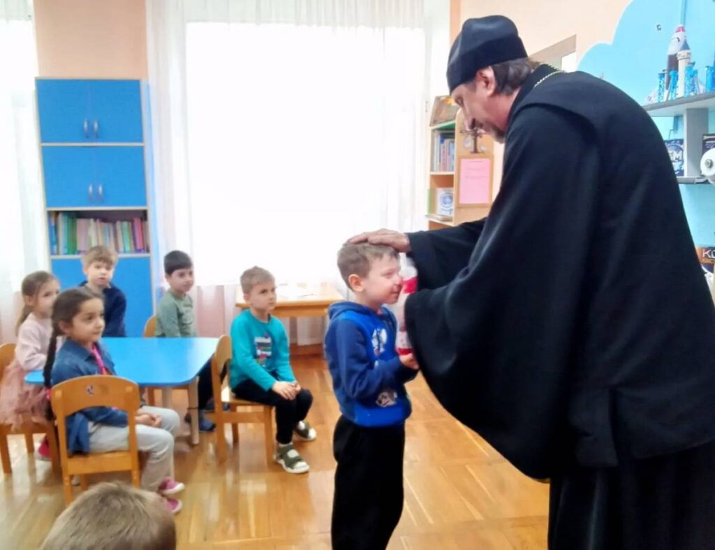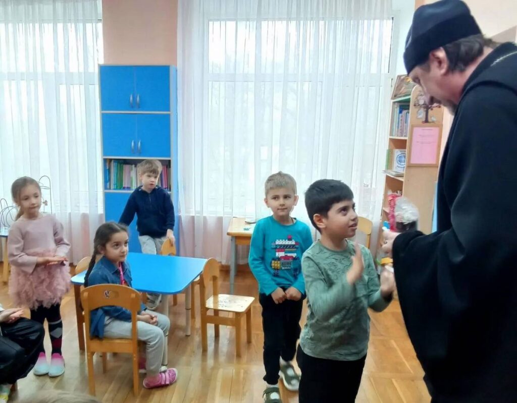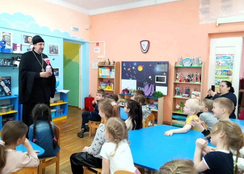 23 апреля по благословению благочинного Юго-Западного округа, настоятеля Свято-Троицкого прихода протоиерея Иоанна Осяка клирик прихода иерей Александр Лиманов и помощник настоятеля по образованию Лариса Дорохова посетили воспитанников и сотрудников детского сада №284 Железнодорожного района г. Ростова-на-Дону. Они провели очередное занятие по основам православной культуры с воспитанниками детского сада и поздравили детей и сотрудников со Светлым Христовым Воскресением.