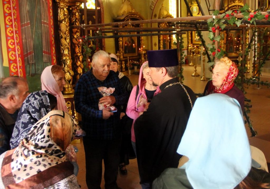 По благословению благочинного приходов Юго-Западного округа протоиерея Иоанна Осяка клирик Троицкого храма г. Ростова-на-Дону иерей Александр Кушнир, помощник благочинного Юго-Западного округа по социальному служению Олег Голиченко и сестра милосердия Троицкого сестричества Наталья Тохтамышева в рамках акции «Пасхальная радость» поздравили членов Совета ветеранов Железнодорожного района г. Ростова-на-Дону с праздником Пасхи. Они вручили пасхальные куличи, которые подготовил Попечительский совет прихода, напомнили о традициях празднования Пасхи и Светлой седмицы, пожелали всем здоровья и успехов в вопросах патриотического воспитания молодёжи.