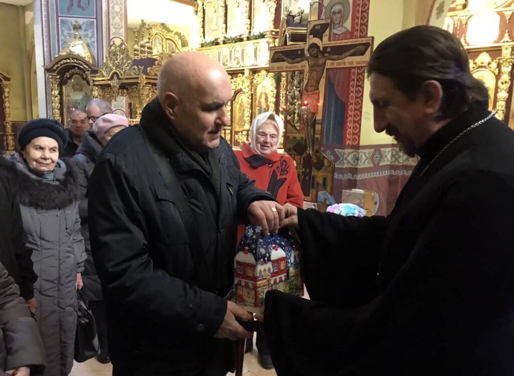 10 января 2026 г. по благословению благочинного приходов Юго-Западного и Западного округов г. Ростова-на-Дону протоиерея Иоанна Осяка клирик Троицкого храма г. Ростова-на-Дону иерей Александр Лиманов, помощник благочинного Юго-Западного округа по религиозному образованию Марина Подгородниченко и сестры милосердия Троицкого сестричества в рамках акции «Дари радость на Рождество» поздравили с праздником Рождества Христова членов Совета ветеранов Железнодорожного района г. Ростова-на-Дону, которые в этот день пришли в Троицкий храм.