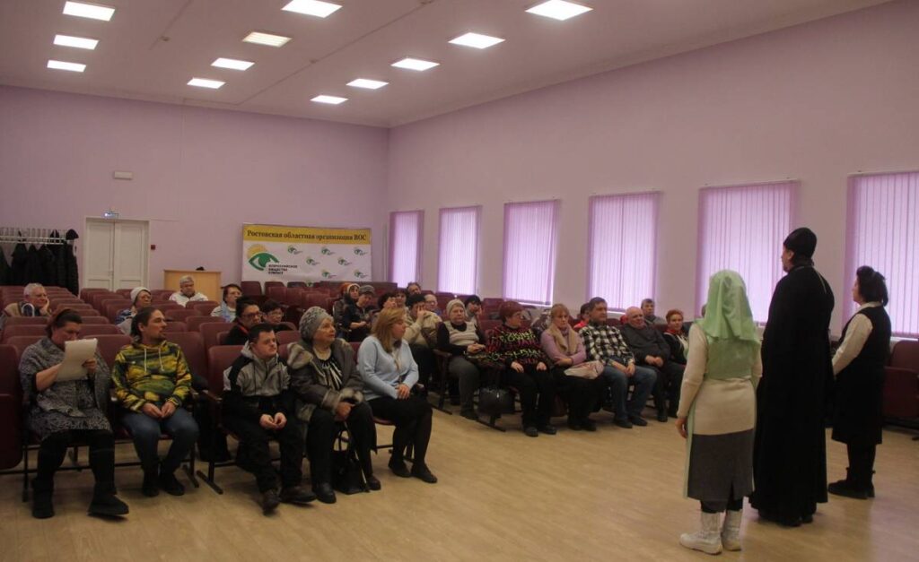 14 января 2026 года по благословению благочинного приходов Юго-Западного и Западного округов г. Ростова-на-Дону протоиерея Иоанна Осяк клирик ростовского храма Святой Троицы иерей Александр Лиманов, помощник благочинного по социальному служению Олег Голиченко, помощник по образованию Троицкого прихода Лариса Дорохова и сестра милосердия Троицкого сестричества Татьяна Митасова поздравили с Рождеством Христовым членов Ростовско-Ленинской МО ВОС и сотрудников областной специализированной библиотеки для слепых.