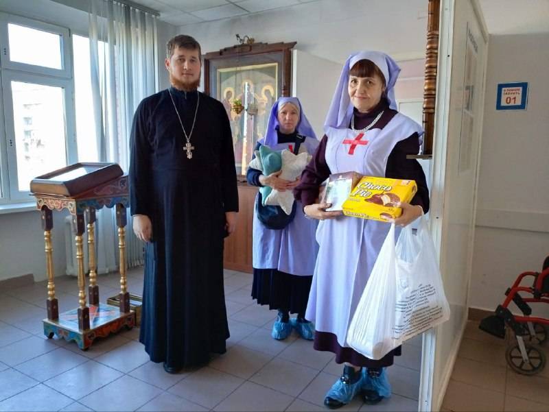 19 декабря 2025 года по благословению благочинного Западного и Юго-Западного округов, секретаря митрополита Ростовского и Новочеркасского по городу Ростову-на-Дону протоиерея Иоанна Осяк помощница благочинного по социальной работе Ирина Сариева и сестры милосердия сестричеств благочиния к празднику святителя Николая Чудотворца передали гуманитарную помощь в Госпиталя Ростова-на-Дону.