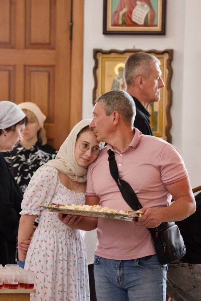 Он также вспомнил годы своего детства, когда ходить в храм на службы запрещалось: «Сегодня нам никто не запрещает, нам нужно бежать, спешить в храм, потому что жизнь очень быстро проходит. Мы не успеем оглянуться, как она завершится, а став перед Богом, мы скажем: «Господи, вот он я, а вот мои дела. Дела именно нашей веры, трудов милосердия, любви к ближнему, вот именно в этом пути и есть наше спасение». По окончании богослужения священники поздравили всех присутствующих с праздником и поблагодарили за совместную молитву!