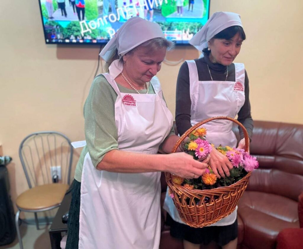 25 ноября сестры милосердия храма Иоанна Воина по благословению настоятеля прихода протоиерея Валерия Волощука посетили Центр социального обслуживания населения Советского района г. Ростова-на-Дону и поздравили всех женщин с наступающим праздником: Днем матери. Сестра милосердия Валентина Кижикина рассказала присутствующим о истории праздника, показала приготовленную сестричеством презентацию. После этого сестры милосердия прихода вручили пожилым людям приготовленные прихожанами букеты осенних цветов.