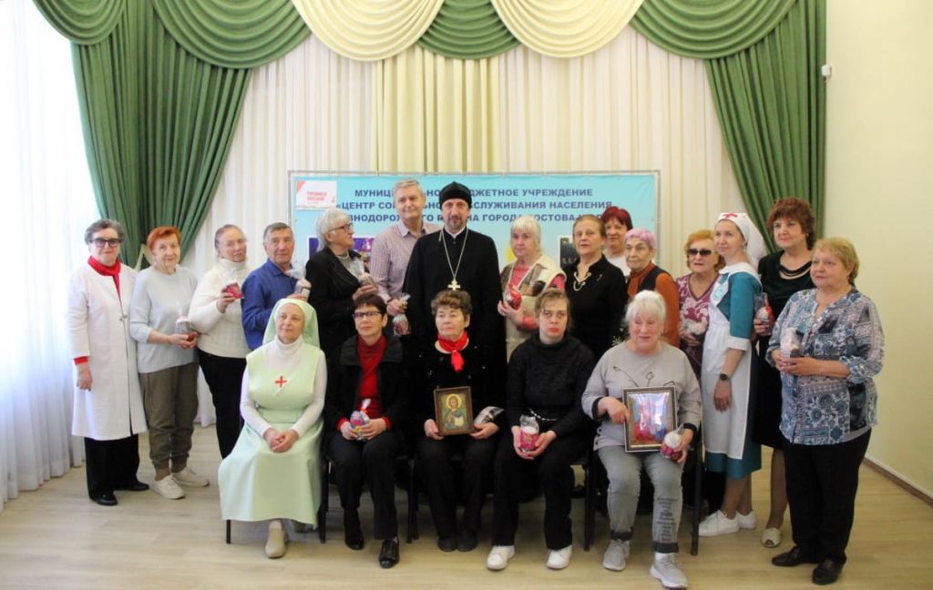 23 апреля 2025 г. в Пасхальную седмицу, по благословению благочинного приходов Юго-Западного округа, секретаря митрополита Ростовского и Новочеркасского по г. Ростову-на-Дону протоиерея Иоанна Осяка, клирик Троицкого храма иерей Александр Лиманов, помощник благочинного по социальному служению О.Э. Голиченко и сестры милосердия Свято-Троицкого сестричества посетили МБУ «Центр социального обслуживания Железнодорожного района г. Ростова-на-Дону».