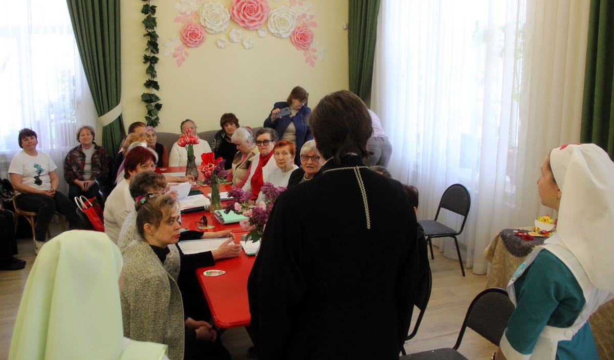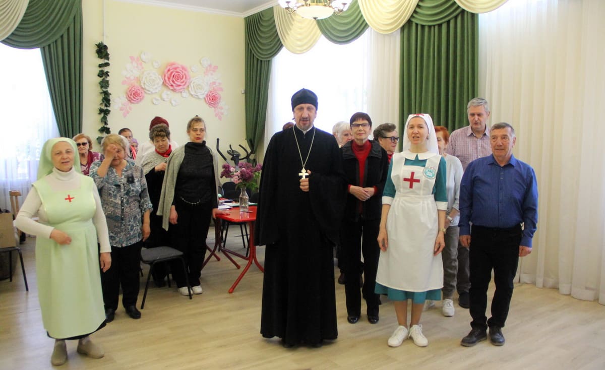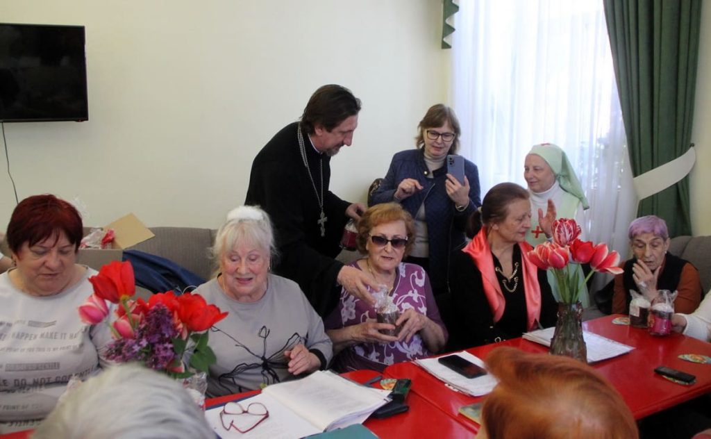 Гости поздравили всех собравшихся пожилых людей с великим праздником Воскресения Христова. Отец Александр рассказал присутствующим о традициях празднования Пасхи, о евангельских событиях, связанных с этим великим торжеством, а также о ежегодном чуде схождения Благодатного огня. После беседы священнослужитель и сестры милосердия вручили всем Пасхальные подарки- куличи.