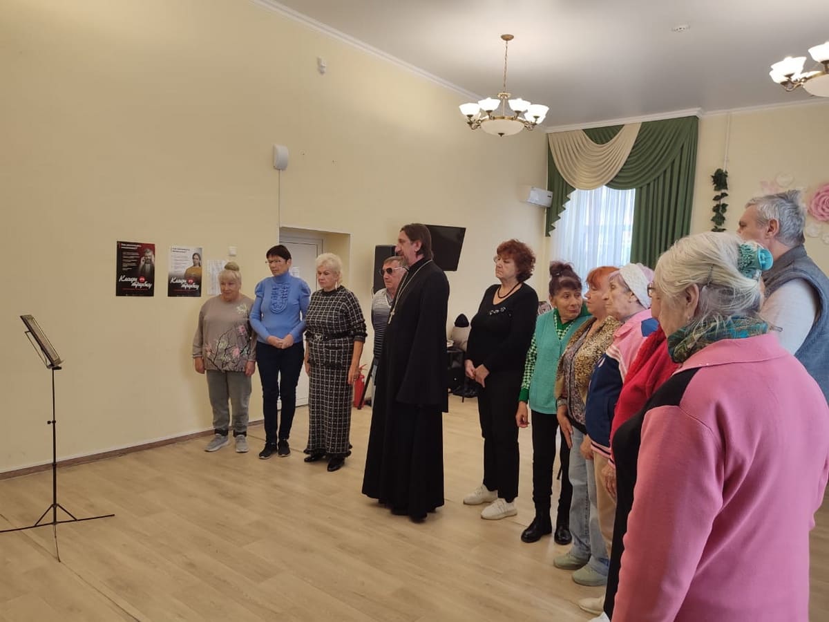 После беседы о святых мученицах под музыкальное сопровождение культорганизатора А.Н. Попова пожилые люди, посещающие Центр социального обслуживания, исполнили для гостей песни духовного содержания.