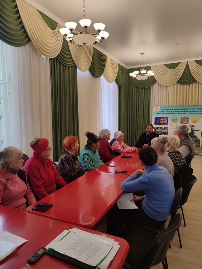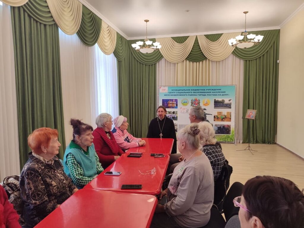 29 сентября 2025 года в канун празднования Дня пожилого человека, по благословению благочинного приходов Юго-Западного округа протоиерея Иоанна Осяка клирик Троицкого храма иерей Александр Лиманов и сестра милосердия Свято-Троицкого сестричества Клавдия Федоренко посетили Центр социального обслуживания Железнодорожного района г. Ростова-на-Дону.