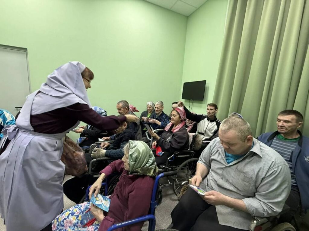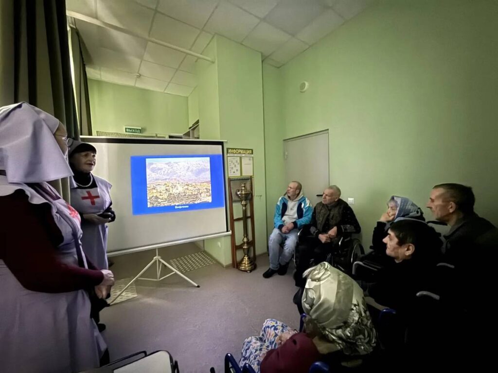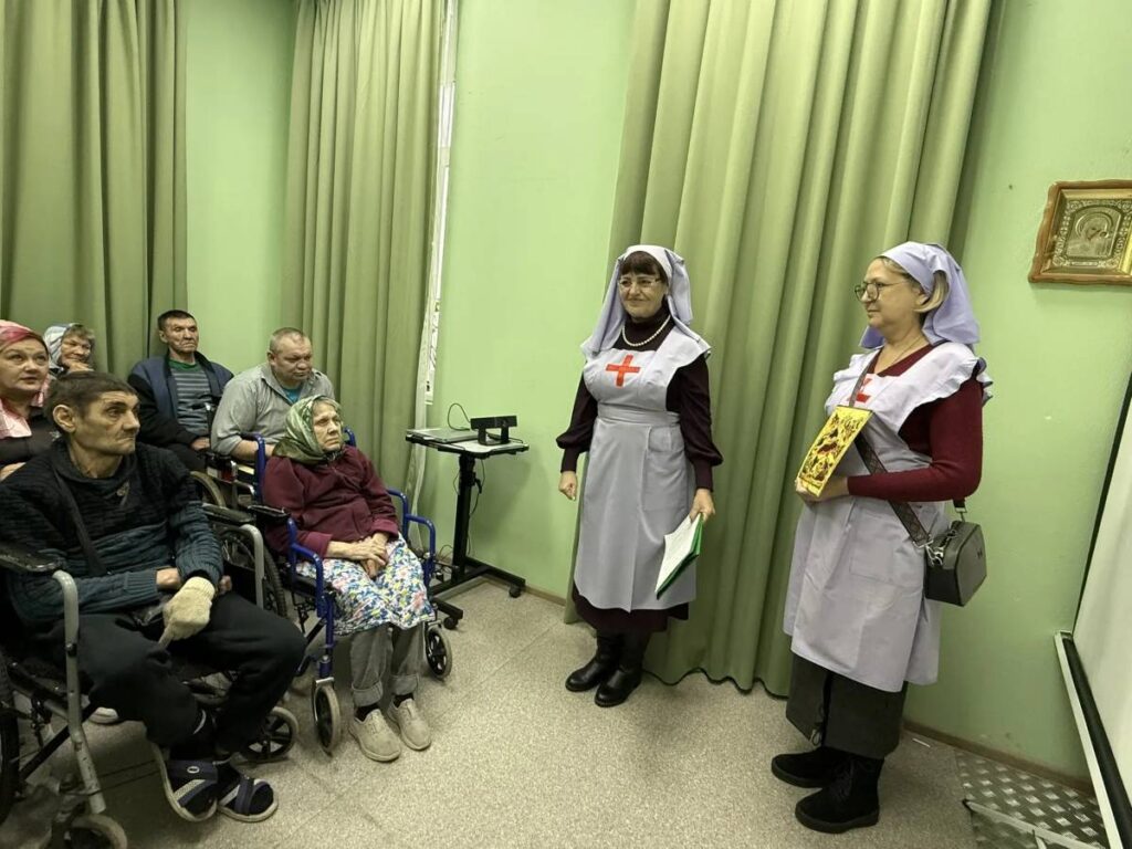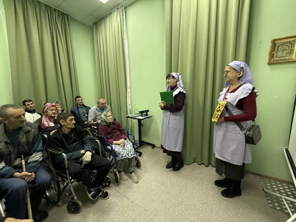 Сотрудницы сестричества рассказали людям с ограниченными возможностями здоровья, временно проживающим в социальном учреждении, о Рождестве Господа Иисуса Христа, показали иконы, прочитали стихотворения русских поэтов, а в заключение провели викторину о празднике.