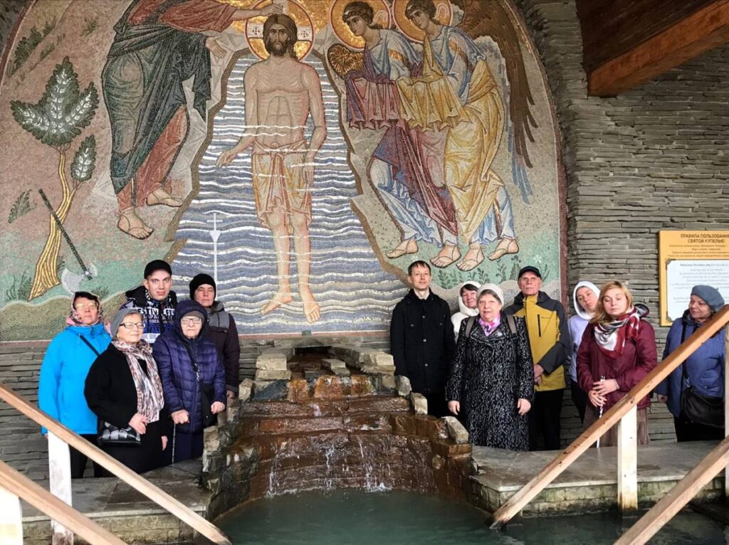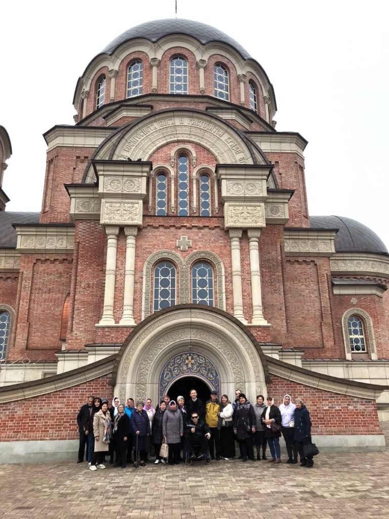Знакомство с приходом началось с посещения каменного храма великомученика Георгия Победоносца, во время которого участники экскурсии увидели самый большой мозаичный купол в России, венчающий главный храм Южного военного округа. После чего гости осмотрели территорию храмового комплекса, посетили иконописную и золотошвейную мастерские, где с большим интересом узнали, как изготавливаются церковные облачения и иконы, полюбовались прекрасным видом на Георгиевский сад с озером, побывали в купели на святом источнике, познакомились с убранством уникального криптового храма в честь Сорока мучеников Севастийских, где люди с проблемами зрения смогли руками «увидеть» вышитые элементы убранства иконостаса и резьбу по камню. Завершилась экскурсия в деревянном храме мученика Иоанна Воина (построен в 2003 году).