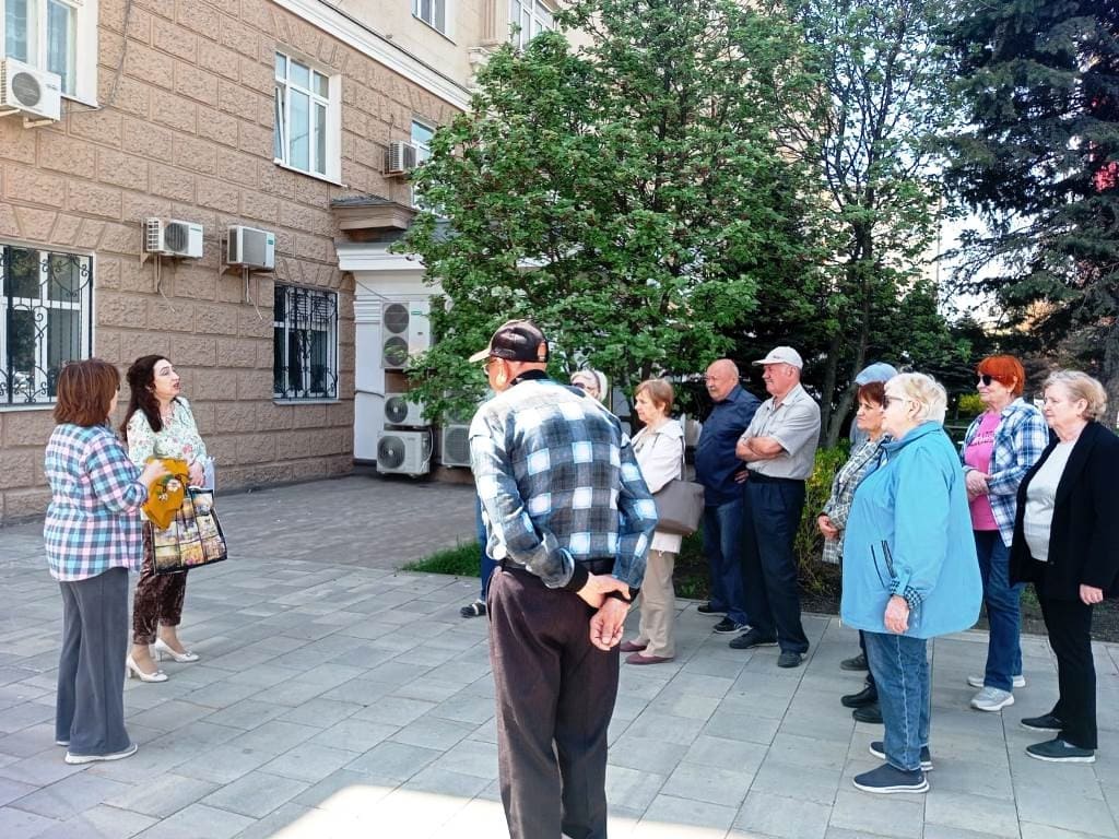 24 апреля 2025 года прихожане храма иконы Божией Матери «Державная» г. Ростова-на-Дону, при котором действует община глухих и слабослышащих людей, совместно с сотрудниками читального зала Центральной городской библиотеки им. М. Горького, организовали для инвалидов по слуху пешеходную экскурсию с сурдопереводом к памятнику-стеле «Воинам-освободителям от немецко-фашистских захватчиков», расположенному на Театральной площади донской столицы.