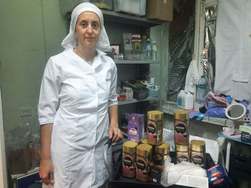 По согласованию со старшей сестрой госпитального сестричества в честь прп. Серафима Саровского был откорректирован список продуктов и вещей необходимых для раненых военнослужащих. На приходах были организованы пункты приема гуманитарной помощи, которую затем добровольцы расфасовали и доставили в госпиталь. Общая сумма собранной помощи составила 110647 рублей.